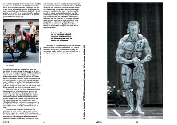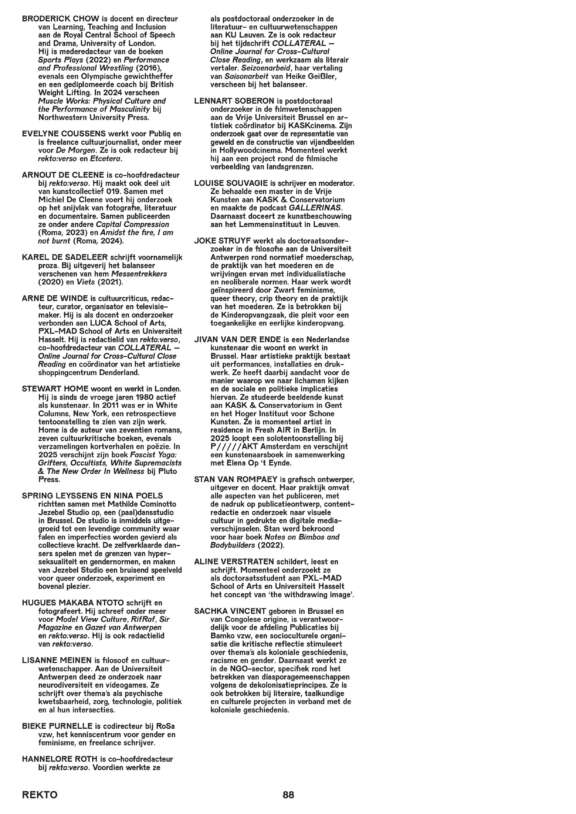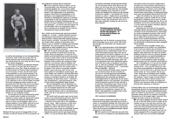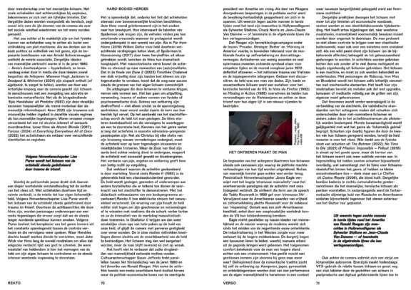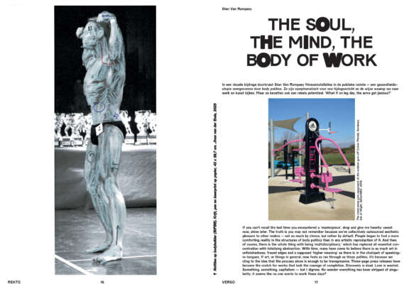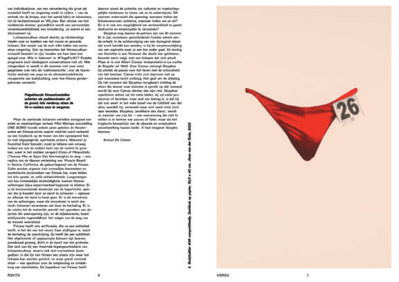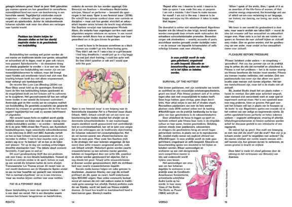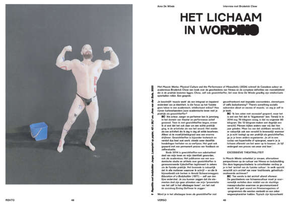 Voor het maartnummer van 2025 hijst de redactie van rekto:verso zich in strakke slipjes en shiny lycra. Van bodybuilding tot aerobics, van crossfit challenges tot fascistische yoga, van gepantserde actiehelden tot queer paaldansers — vanwaar die hedendaagse obsessie met fit-zijn?