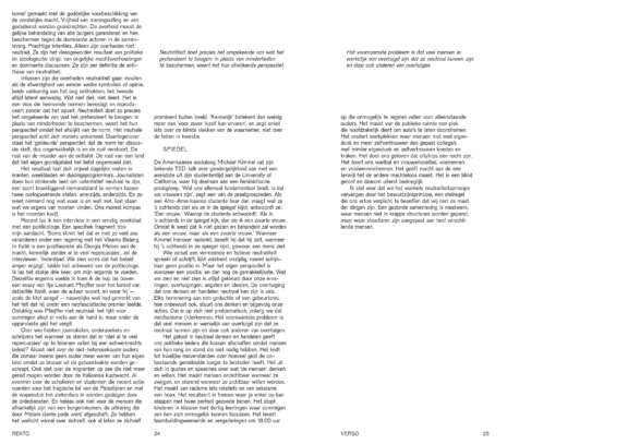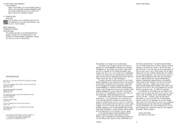 Goed of kwaad, voor of tegen. Tegenover die starre opposities staat het neutrale. Kan het een ontsnappingsroute vormen uit een conflictueuze samenleving, of verrijst het daarin als het zoveelste generisch appartementsgebouw? In ons juninummer laten schrijvers, denkers en kunstenaars zich aan het wankelen brengen, maken ze aanstalten, blijven ze opgebrand branden. Meegaand en koppig tegelijk.
