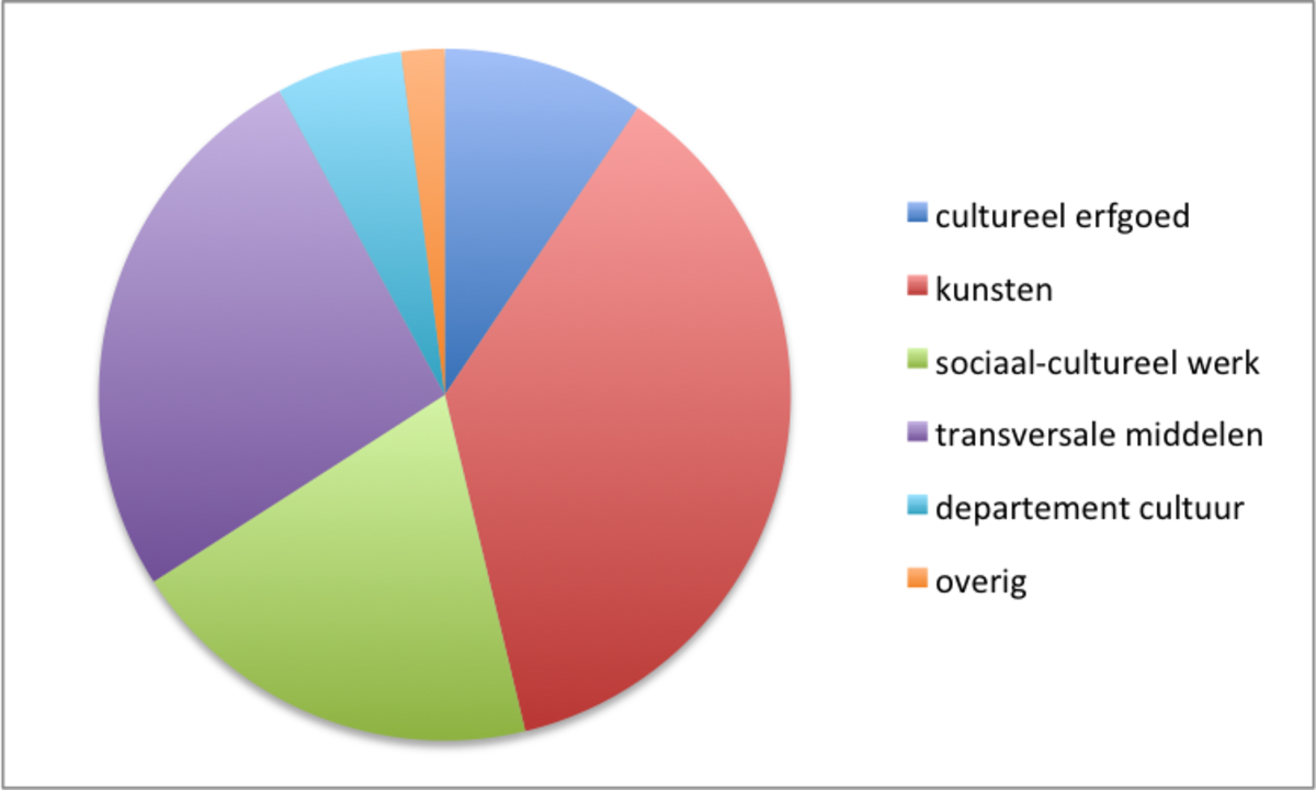 Het cultuurbeleid valt grosso modo uiteen in drie grote blokken: de kunsten, het cultureel erfgoed en het sociaal-cultureel werk (inclusief amateurkunsten, participatie...). Daarnaast gaat er nog een behoorlijk budget naar het zogenoemde ‘transversaal cultuurbeleid’ of ‘het overkoepelende beleid’ (zie verder).