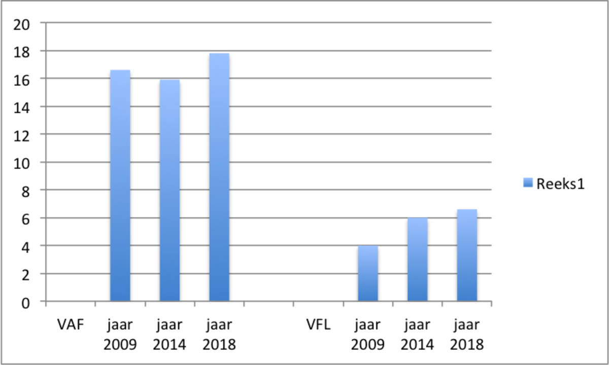 De grafiek toont een stijging van 1999 tot 2014, in absolute cijfers althans. Als de gezondheidsindex meegerekend wordt, dan is er al een daling van het budget te merken vanaf 2009. Pas vanaf het begrotingsjaar 2017 komt er een kentering.