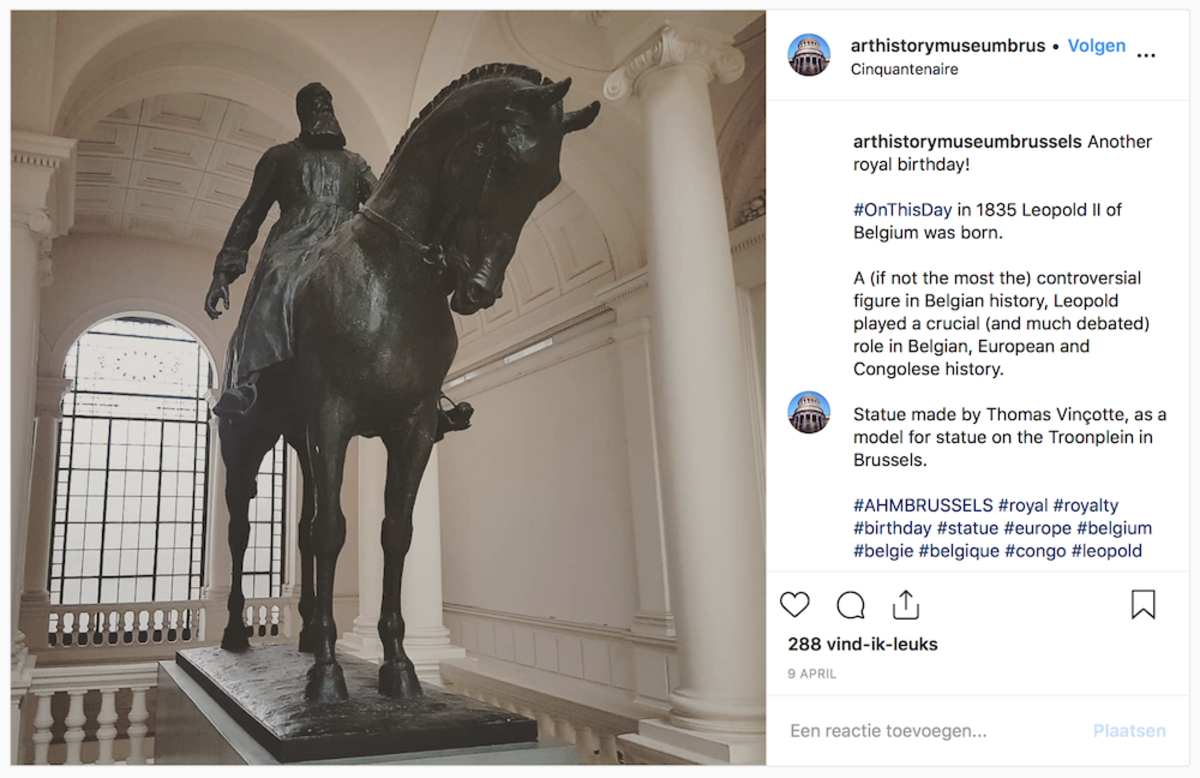 Naar analogie van jullie eerdere post voor de verjaardag van koning Albert I besloten jullie een Instagram- en Facebookpost te delen ter ere van de verjaardag van Leopold II. Daar werd, ter kwalificatie, wel bij vermeld dat hij ‘een controversieel figuur is’. Reacties van volgers gingen van ‘goed gedaan’ naar ‘hoe is dit vandaag de dag nog mogelijk?’