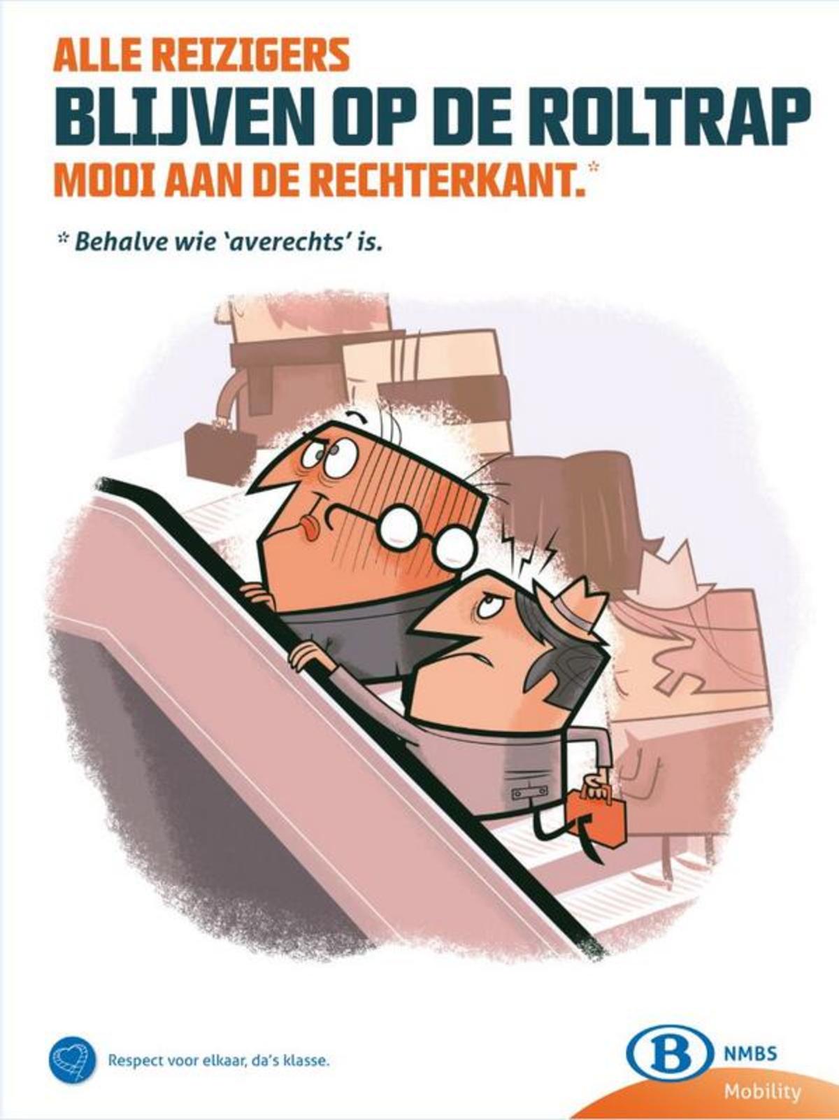 - 'Allicht niet, oude mensen zijn al even erg! Dat heeft al de tijd van de wereld, dat betaalt ocharme 6 euro 50 om vanuit Hasselt heen en weer naar Blankenberge te rijden, maar laat ze niet met een roltrap naar het perron gaan of ze blokkeren heel dat spel voor alles en iedereen.'