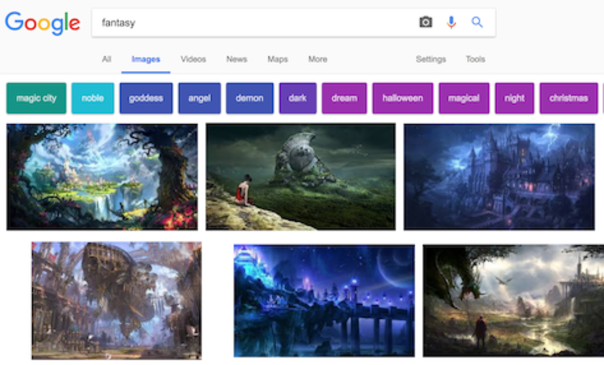 De afbeeldingen die je in Google te zien krijgt wanneer je ‘fantasy’ intikt, demonstreren in één opslag wat ik bedoel. Als ik mijn zoekmachine mag geloven, leidt fantasie kunstenaars telkens opnieuw naar hetzelfde grijsblauwe berglandschap waarin een eenzame, kleine mens in de mistige schaduw leeft van een of ander reusachtig dier met zijdezachte vleugels, een stevig gewei of een laag vervaarlijke schubben. In de cinema (Lord of the Rings) of op tv (Game of Thrones) krijg je er geheid nog een dwerg met behaarde voeten, een kloek bebaarde ridderfiguur of een vrouw met wit haar tot aan haar kont bovenop. Al bij al lijkt het wereldbeeld in fantasy fictie wel héél sterk op de manier waarop ze in de romantiek over de middeleeuwen dachten, geloof ik.
