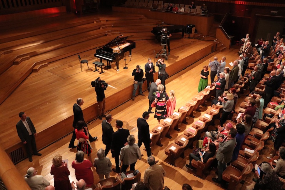 Je hoort wel eens wilde verhalen over agenten in de zaal die vechten om een kandidaat een contract aan te bieden. Dat is natuurlijk overdreven, maar de interesse van impresariaten, bureaus die musici vertegenwoordigen bij operahuizen en concertorganisaties, valt toch op. Al tijdens de eerste ronde zie je overal notitieboekjes, laptops en tablets. Het geluid van ritselend papier en vallende stylo’s maakt deel uit van de recitals, terwijl het zaallicht gewoon blijft branden. De juryleden zijn duidelijk lang niet de enigen die de kandidaten aan het beoordelen zijn.