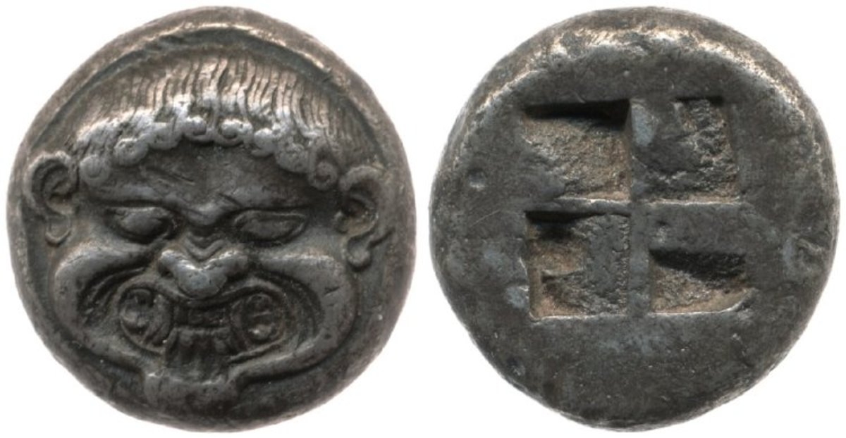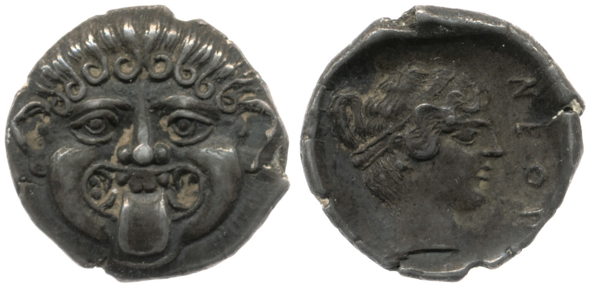 In munten uit de Archaïsche periode (ca. 800 - 450 v.C.) werd dikwijls het hoofd van de Gorgon-Medusa geslagen. Deze munten tonen een grotesk hoofd, dat eerder verwijst naar Medusa als een van de drie Gorgonen – oftewel naar het eigen verhaal van Medusa – dan naar het afgevlakt personage uit de Perseus-mythe. Daarom verwijst men eerder naar dit motief als ‘Gorgoneion’ en niet als Medusa. Ze heeft hier slagtanden, baard, uitstekende tong, uitpuilende ogen en een vileine grimas of een brede lach.