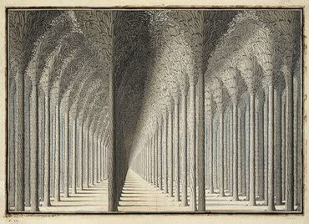Het resultaat: een scenografie slechts ontworpen voor het oog van de toeschouwer. Ruimte voor spelers is er niet. En omdat het Galli-Bibiena was die als eerste het verdwijnpunt iets naast het midden plaatste, raakt de kijkende blik gevangen in een eindeloos vergezicht.