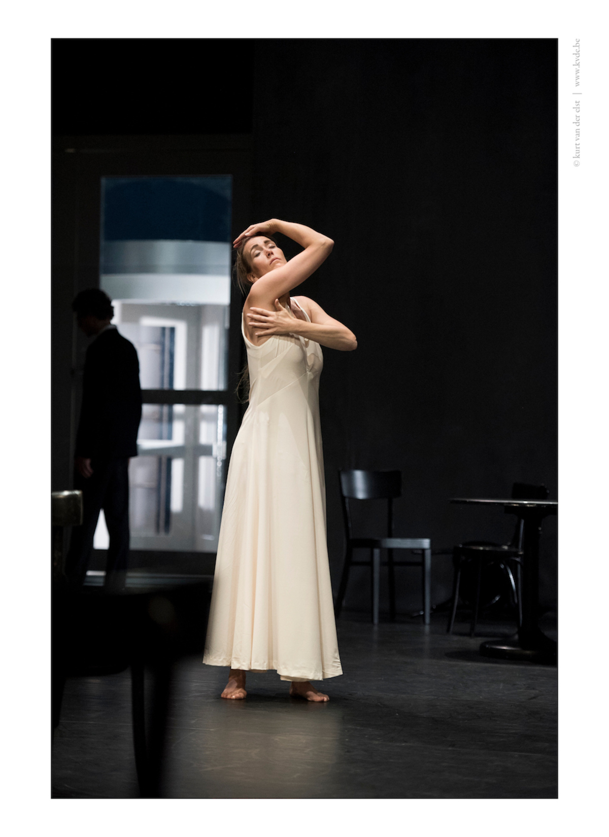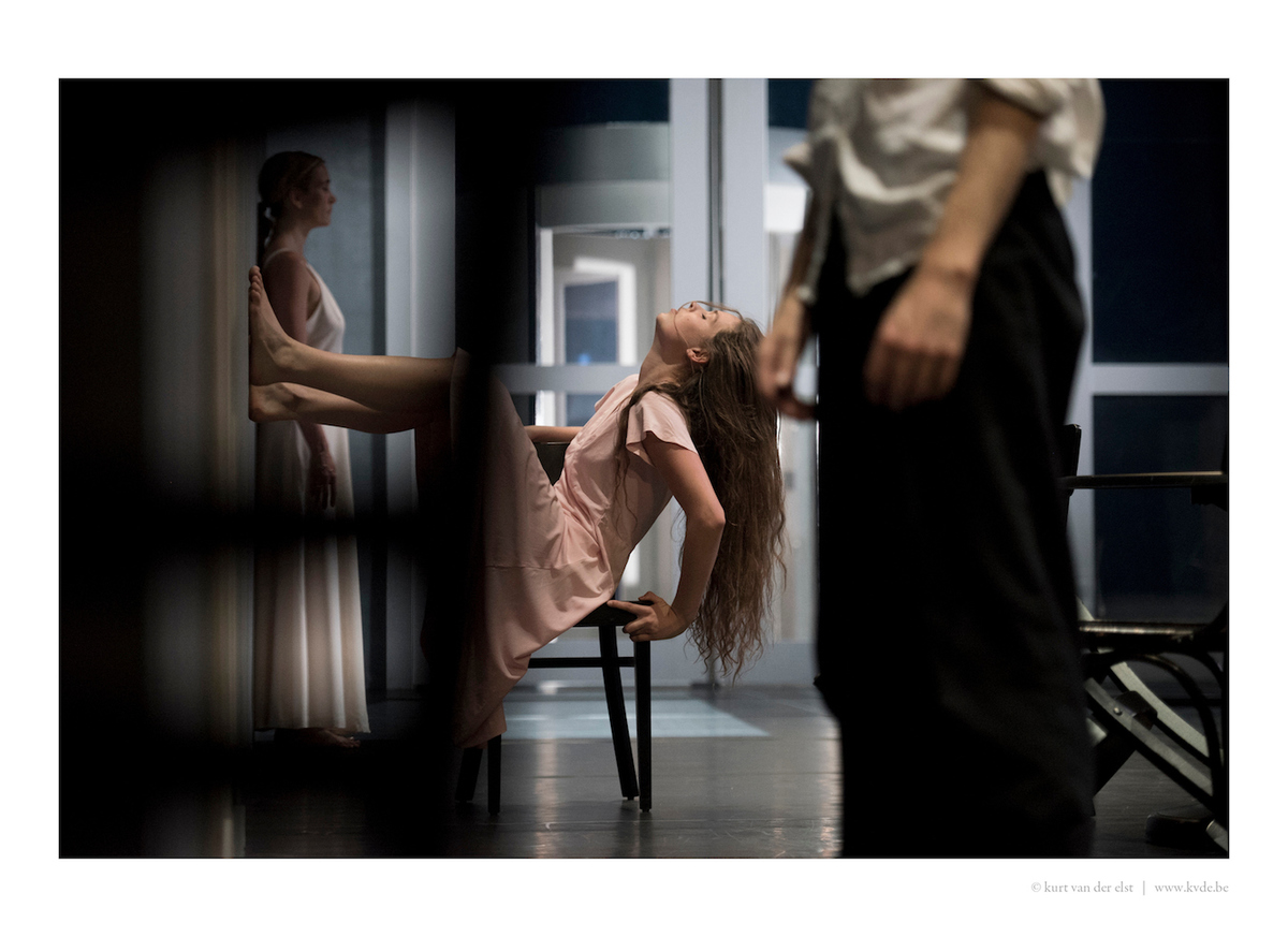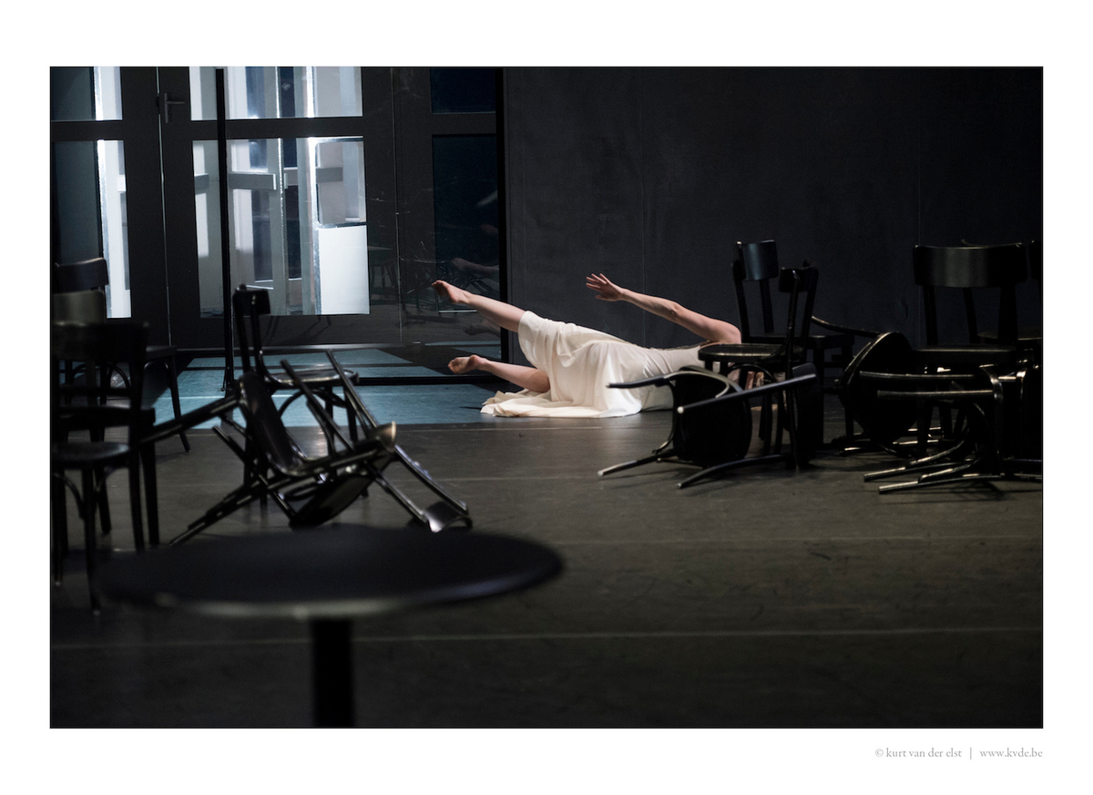 En toch. Als Mara zich in volle overgave en wit nachtkleed tegen de muur gooit van het monumentale decor zat ik te gniffelen. Het was nochtans geen persiflage. Dat tegen-de-muur-gesmijt maakt deel uit van Café Müller. Het wordt niet uitvergroot, gewoon uitgevoerd. Erger nog: zelfs toen ik de volleerde ballerina’s van Ballet Vlaanderen Café Müller zag dansen – de eerste keer dat een ‘geautoriseerde versie’ mocht worden gedanst door een ander gezelschap dan Tanztheater Wuppertal Pina Bausch! – kon ik een glimlach niet onderdrukken toen een (perfect gedanst) slaapkleedje zichzelf tegen de muur smakte.