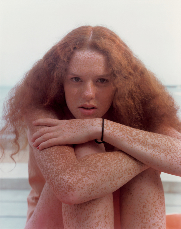 Ook de portretten van Meyerowitz worden bijzonder stiefmoederlijk behandeld. Ik telde er maar twee. Sarah (1981), een roodharig meisje op het strand van Cape Cod met overmatige sproeten op het gelaat en het lichaam, wordt opstaand op groot formaat getoond. Om meer inkijk te geven in het portretwerk van Meyerowitz had het een optie kunnen zijn om dit iconische beeld uit het album Redheads (1991) niet op te blazen, maar het net kleiner in te schalen en te combineren met andere portretten uit dezelfde reeks. Een opstelling eerder in 2017 in Arles tijdens Les recontres de la photographie bewees al dat het kan. Daar maakte Sarah onderdeel uit van een matrix van drie maal drie opstaande beelden. Om het geheel af te ronden werden die negen links en rechts dan nog geflankeerd door een liggend formaat. Zo had je elf portretten, geput uit eenzelfde verzameling.