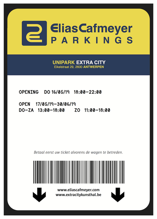Op dit moment loopt in Extra City de expo van Elias Cafmeyer. Hij werd door Ria Pacquée uitgenodigd. Cafmeyer heeft de gehele tweede verdieping ingericht als een verdieping van een ondergrondse parking van een luchthaven of ziekenhuis – auto, brommer, betaalautomaat en slagbomen inclusief.
