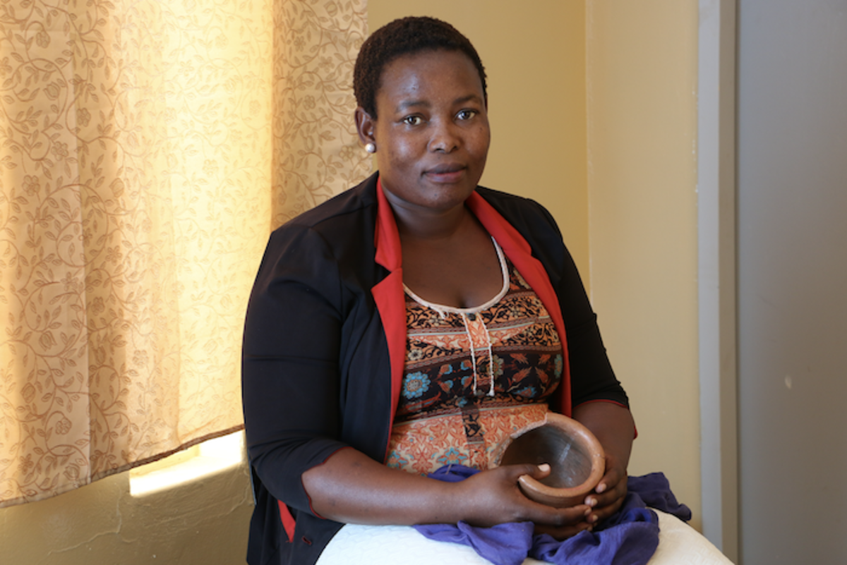 Eén van die master practitioners was Sara Otukile. In de schaduw van een wuivende boom achter haar huis vertelt ze hoe ze potten begon te bakken. ‘Ik geraakte geïnteresseerd door mijn moeder, die ook potten vervaardigde en daar de hele familie mee kon ondersteunen. Ik besefte dat het een ambacht was die me een inkomen kon verschaffen, ook al is pottenbakken fysiek zwaar en heb je er veel geduld voor nodig.’