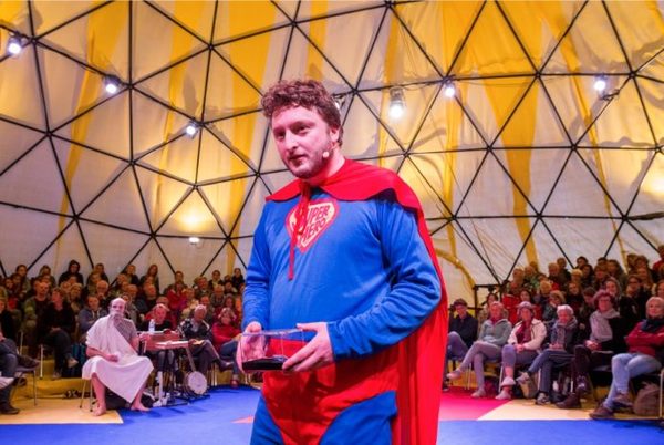 Hoe dat komt? Enkele voorstellingen lichten daarover ook zelf een tipje van de sluier. Neem de zoektocht van De Orde van de Dag naar een nieuw idealisme in De idealisten op Oerol. Elke dag nodigde theatermaker Greg Nottrot, gehuld in Supermanpak, een andere (bekende) idealist uit in zijn futuristisch en bolvormig vormgegeven gele theatertje, om met hem of haar theatraal in gesprek te gaan. Samen met die gast en met het publiek wilde Nottrot elke avond bepalen aan welk goed doel hij 1.000 euro van zijn eigen spaarrekening zou besteden. Dat leverde soms schurende, piepende en krakende ontmoetingen en gesprekken op, juist omdat het zo moeilijk bleek een gemeenschappelijke ideologische grond te vinden, en – nog moeilijker – een collectief idealistisch aanvalsplan voor een betere wereld te formuleren.