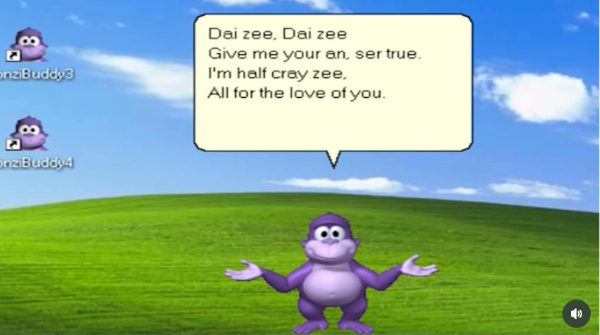 Die zingende aap was niemand minder dan BonziBuddy, een virtuele assistent die Windows net voor de eeuwwisseling had gelanceerd. Op verzoek hielp hij bij downloads, vertelde grapjes, of – zoals in het door Rusowsky gedeelde filmpje – gaf hij een eigen versie van ‘Daisy Bell’ uit 1892, niet toevallig het allereerste lied dat ooit met behulp van spraaktechnologie door een computer werd gezongen. Omdat BonziBuddy ook illegaal gegevens van Windows-gebruikers verzamelde, werd de plug-in na een rechtszaak van het net gehaald. Recent viste GenZ BonziBuddy weer op, als charmante meme die perfect aansluit bij GenZ’s hang naar lo-fi internetcultuur uit de jaren 2000.