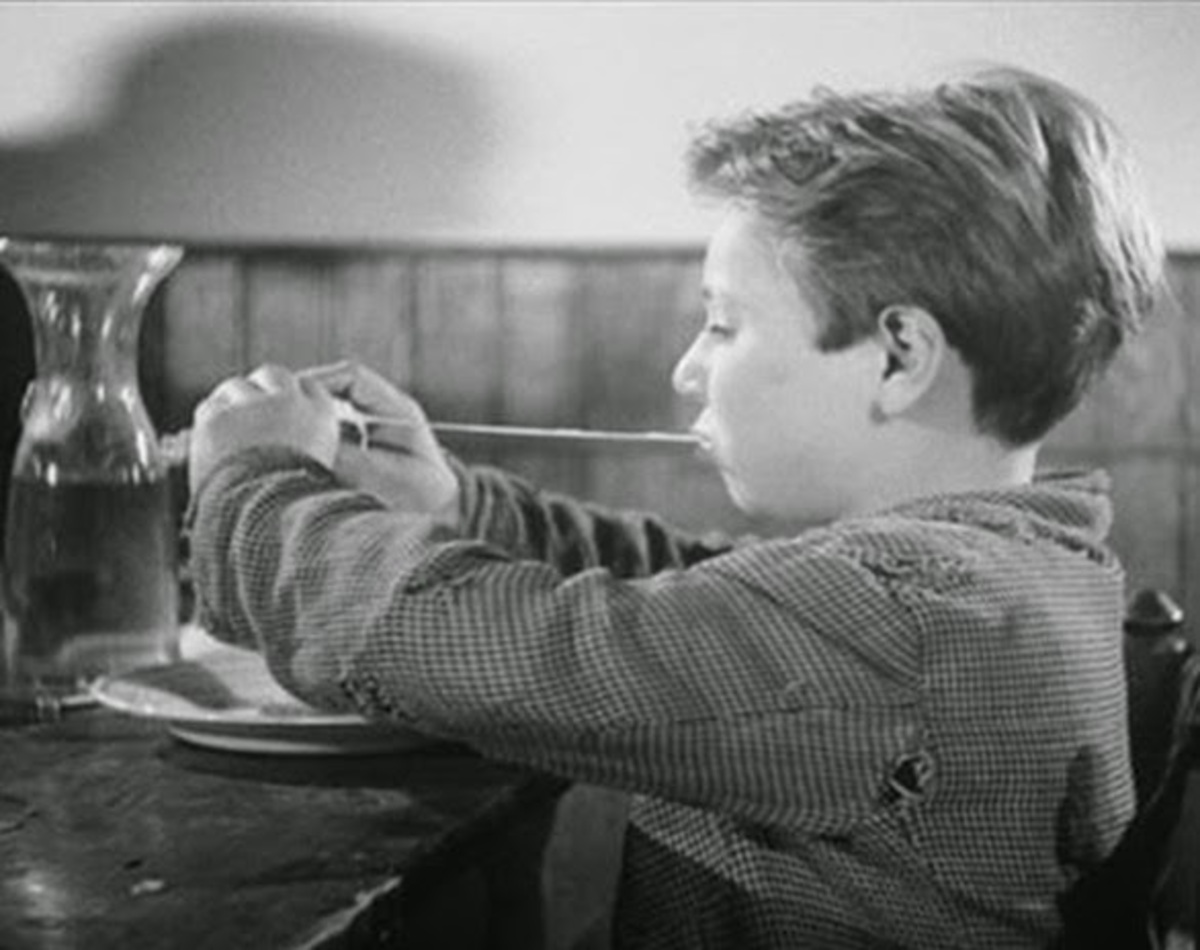 Wanneer Bruno op het einde van Ladri di biciclette de hand grijpt van zijn vader – zijn favoriete, persoonlijke fietsendief – zegt hij met dat gebaar meer dan alle schaarse woorden in de film bij elkaar. Geluidloos spreekt hij zijn vader moed in. Zijn ingetogen gestiek is evenwel geen symbool voor kinderlijke naïviteit: de jongen weet immers maar al te goed welke schuld zijn vader treft. Noch is het een teken van schaapachtige volgzaamheid, van het kind als lijdend voorwerp. Zonder aarzelen neemt Bruno met de hand van zijn vader ook de leiding in handen.