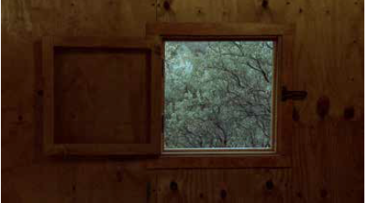 Dat huisje verschijnt overigens niet voor het eerst in Bennings werk. Het maakt deel uit van zijn Two Cabins-project, een onderzoek naar de betekenis van eenzaamheid en sociaal isolement. Een tweede huisje trok Benning op dezelfde plek al een jaar eerder op, geïnspireerd op de hut waarin politiek filosoof en stiltezoeker Henry David Thoreau rond 1845 ruim twee jaar verbleef bij het meer Walden Pond in Concord Massachusetts. Beide replica’s figureerden ook al in de door Julie Ault gecoördineerde publicatie (FC) Two Cabins by JB (2011) en een tweekanaals video-installatie die Benning in 2012 presenteerde in Berlijn, met statische natuurbeelden gefilmd door de ramen van beide cabins. In 2014 zou hij over Thoreau ook nog de film Concord Woods (2014) draaien.