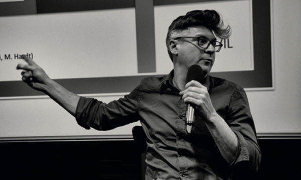 ‘We moeten een duidelijk onderscheid maken tussen publieke en civiele ruimtes en die van de commons. Alles kan in een publieke ruimte geroepen worden. Het onverwachte kan er altijd oppoppen om bestaande verhoudingen al dan niet te verstoren, dan pas wordt het publieke ruimte. Maar om dat vrije woord te kunnen nemen, moet die ruimte georganiseerd worden. Dat is de rol van de civiele ruimte. In de publieke ruimte kan men bijvoorbeeld democratisch onderwijs eisen, maar het is in de civiele ruimte dat een school wordt gebouwd of men een politiek afdwingt. Tenslotte regelen de commons de toegang tot het publieke goed. Als we maar vijftien stoelen hebben, wie mag dan naar school en wie niet? In de breedste betekenis van het woord is een publieke ruimte dus ook een politieke ruimte. En dat hoeft niet noodzakelijk activistisch te zijn. Politiek betekent – in de lijn van Rancière – vormgeven aan de samenleving. Als je in het midden gaat staan roepen, geef je vorm aan je context. Wanneer de weinig politiek geëngageerde Jan Fabre de zuilen van de Gentse universiteit inpakt met plakken ham, dan initieert hij een debat en maakt hij dus publieke ruimte. Zijn actie is niet inhoudelijk politiek bedoeld, maar doordat ze iets performatiefs in de samenleving duwt, wordt ze politiek.’