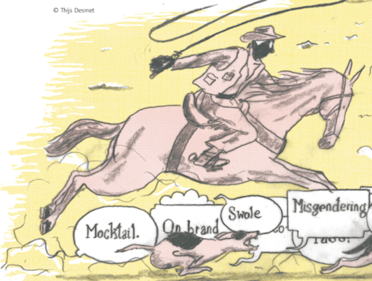 De anekdote illustreert niet alleen wat er gebeurt als zes mannen zich samen opsluiten in een Ardense chalet. Belangrijker is de heftigheid waarmee we het bestaansrecht van een banaal woord bevochten – een heftigheid die niet alleen rond Scrabble geldt. Behalve de regels voor een gezelschapsspel lijkt een woordenboek namelijk ook de krijtlijnen uit te zetten voor een normatief taalbeleid daarbuiten. En ook dat ontketend best wat hysterie – zei iemand daar ‘dt-fout’?