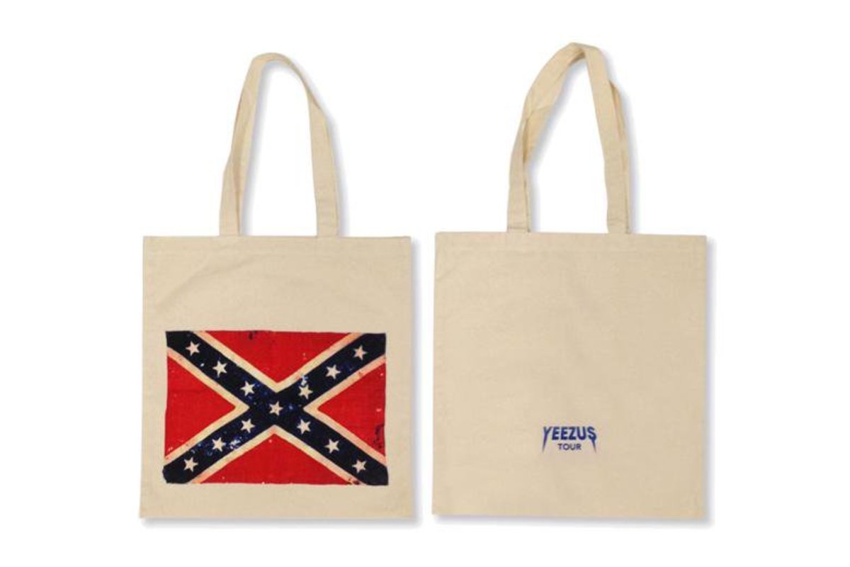 West probeert al langer de angel uit bepaalde symbolen te halen. In 2013 liet hij de de Stars and Bars op zijn jasje naaien: hét symbool van het Zuiden van de Verenigde Staten tijdens de burgeroorlog, en bij extensie dus het in stand houden van de slavernij. Er zijn zelfs foto’s waarop West zichzelf drapeert in de confederatievlag. Hierover zei hij tijdens een radio-interview: ‘The Confederate flag represented slavery in a way. That’s my abstract take on what I know about it, right? So I wrote the song ‘New Slaves’. So I took the Confederate flag and made it my flag. It’s my flag now.’ Daarom liet West de vlag ook nadrukkelijk naar voren komen in de merchandise voor zijn Yeezus-tour.