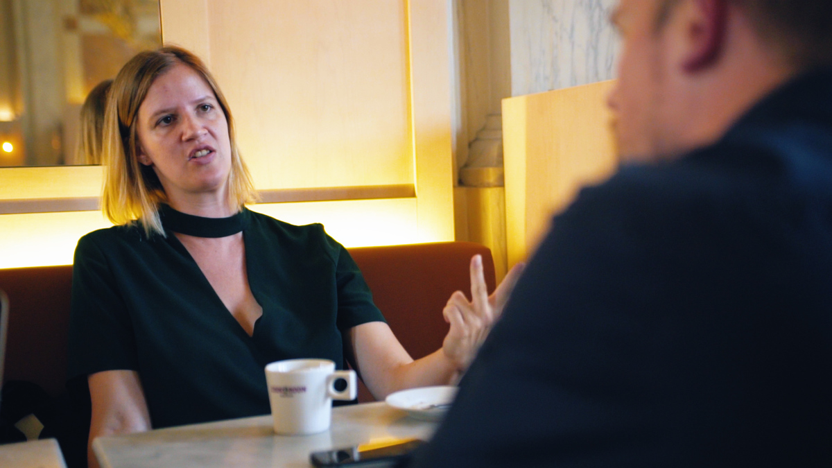 Ze begroeten elkaar hartelijk in het Centraal Station van Antwerpen. 'Je columns zijn zo’n mooie aanvulling op je werk', complimenteert Lems de theatermaakster. 'Je neemt er de vrijheid om te praten over jouw beleving van seksualiteit en wat je lekker vindt. Erg krachtig.'
