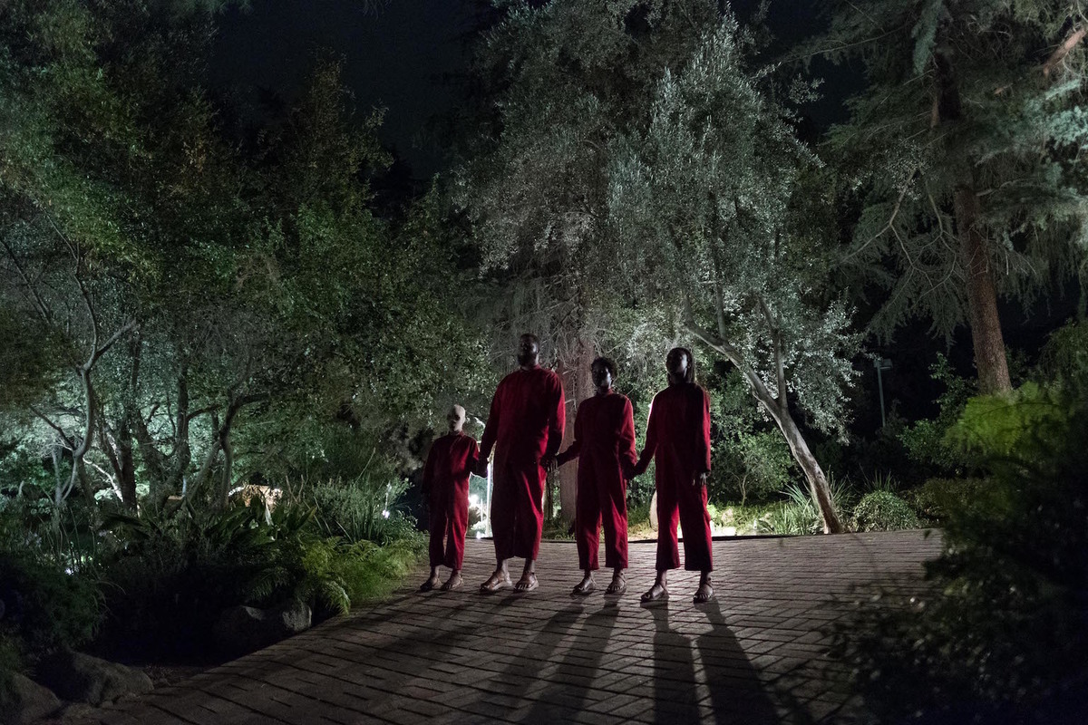 Peele doet dit door in te zoomen op een familietrip. Dertig jaar nadat Adelaide in een spiegelpaleis op het strand van Santa Cruz haar dubbelganger ontmoet, trekt ze met haar gezin naar datzelfde strand. Na enkele verontrustende voortekenen staat er ’s avonds op hun oprit een identiek gezin in rode jumpsuits.