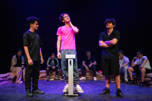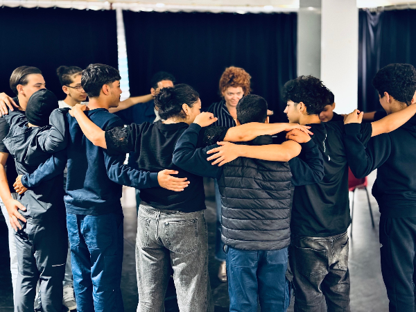 We kiezen er bewust voor om tijdens de schooluren te werken. Dat is geen detail maar een statement. We zijn er immers van overtuigd dat kunst en theater een volwaardig onderdeel moeten zijn van het curriculum. De manier waarop we werken is bewust niet hiërarchisch. We vertrekken vanuit het gesprek, ieders stem wordt versterkt via verschillende disciplines die dicht bij de leefwereld van de jongeren liggen. Ze beatboxen, rappen en dansen, met humor, ernst en filosofie die ook van de straat is. Zo wordt kunst niet iets dat van buitenaf wordt binnengebracht, maar iets dat al aanwezig is in hen en erop wacht om erkend te worden. De artistieke coaches, leerkrachten en sociaal begeleiders zoeken samen met de jongeren naar hun artistiek potentieel. Uit gesprekken en improvisaties groeit een collectieve voorstelling. Geen glad product met applaus als doel, maar een rauw proces waarin de jongeren ervaren dat hun stem ertoe doet.
