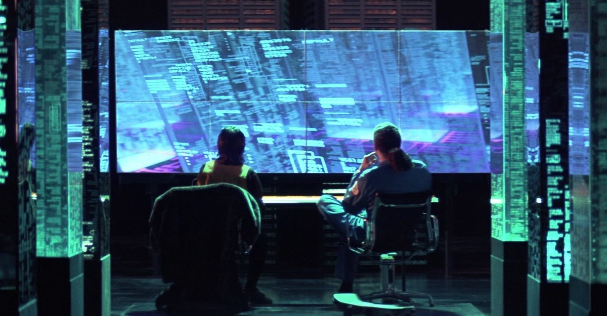 Het enige verschil was wat erop verscheen. Absurde commando’s in groene letters in Superman III, pop-upvensters over geüploade virussen in Independence Day, en zwevende wiskundige formules of spacy screensaveranimaties in zowat elke film die wilde aangeven dat er door een mainframe werd gereisd.