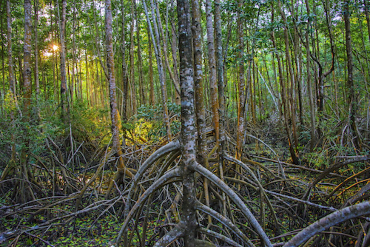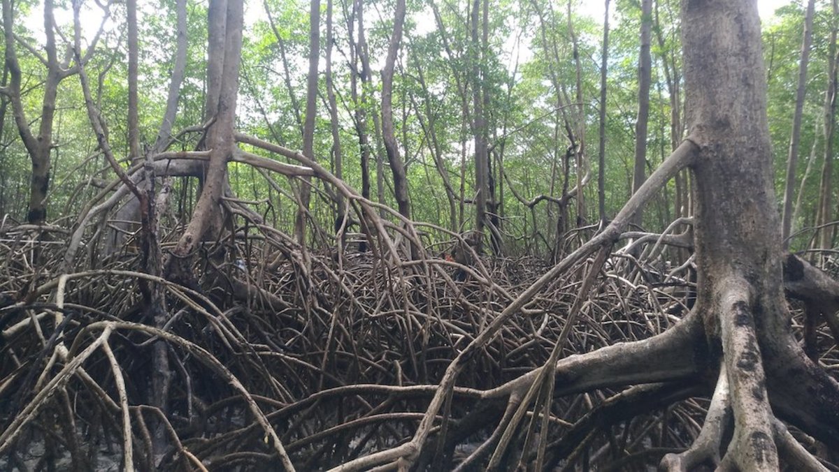 De mangrove is een wonderlijke doorworteling die continu in beweging is, zonder vaste grond.