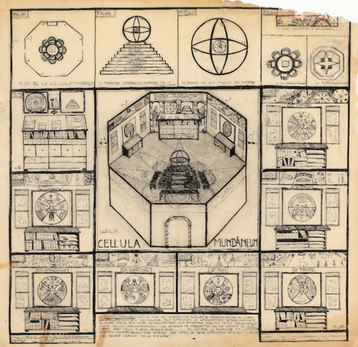 De Atlas Mundaneum eindigt met een tekening van wat Otlet als centrale kamer voorzag voor het Mundaneum: de Cellula Mundaneum. Daar zou de ultieme synthese van de wereld zijn plaats krijgen: een achthoekige kamer met de acht cirkels van de Atlas op de acht muren, en in het midden van de kamer opnieuw de acht cirkels, op de vloer, met als middelpunt een beeld van de Sphaera Mundaneum op de piramide. Het Mundaneum is een cirkel, met een omtrek (de wereld), van waaruit wij moeten zoeken naar het middelpunt (de synthese), van waaruit dan weer honderden stralen de wereld verlichten.