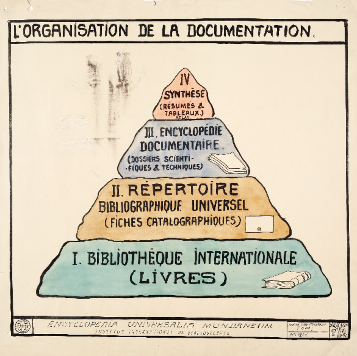 Otlet en La Fontaine hoopten dat ze uit alle gepubliceerde teksten (level I) via hun classificatiesysteem (level II) alle dubbele informatie zouden kunnen schrappen, en dat ze dan een samenvatting zouden kunnen maken, in de vorm van een encyclopedie (level III). (Vanaf daar hoopten ze dan nog op level IV te geraken, maar daarover later meer.)
