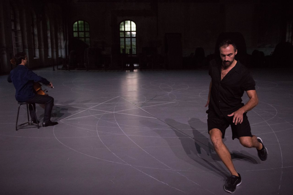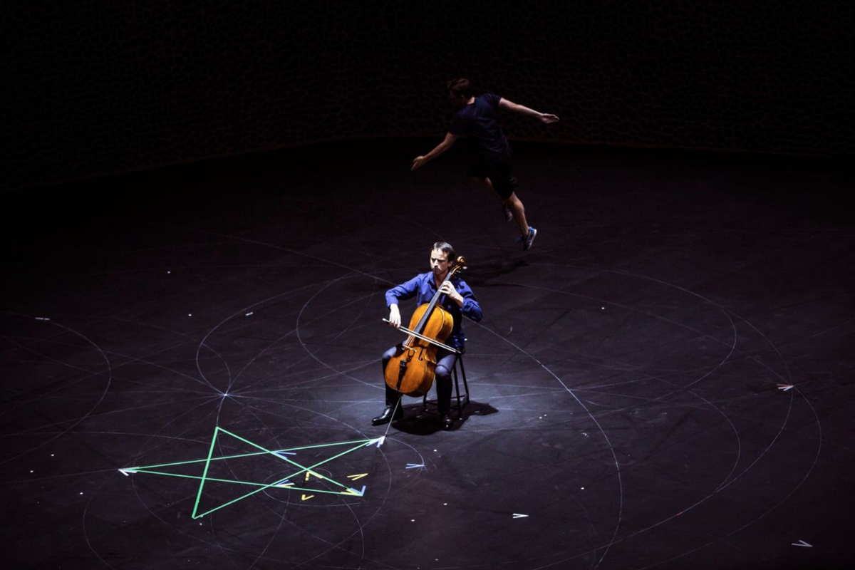 Van leven, over dood, naar verlossing: het klinkt ongeveer als de dramaturgie van de voorstelling, meedogenloos gestaag en onomkeerbaar kracht bijgezet door het licht. Laat de avondzon – tijdens de premièrereeks in de Ruhrtriënnale – eerst nog een ritmische reeks lengende stroken licht vallen op de dansvloer door de hoge open ramen van de vroegere ‘dynamozaal’ in Gladbeck, dan speelt Jean-Guihen Queyras de sarabande van de vijfde suite in het donker. Zelden klonk een gulden snede zo duister. In die uitgebeende sarabande doet Bach iets met de tijd dat de verbeelding tart: hij lijkt tot stilstand te komen. Maar zo gestaag als het licht verdween, zo abrupt licht de scène opnieuw op wanneer Queyras de zesde suite inzet: mineur slaat om in majeur, alle registers worden opengetrokken: de dans is joyeus, de muziek een triomf op de dood.